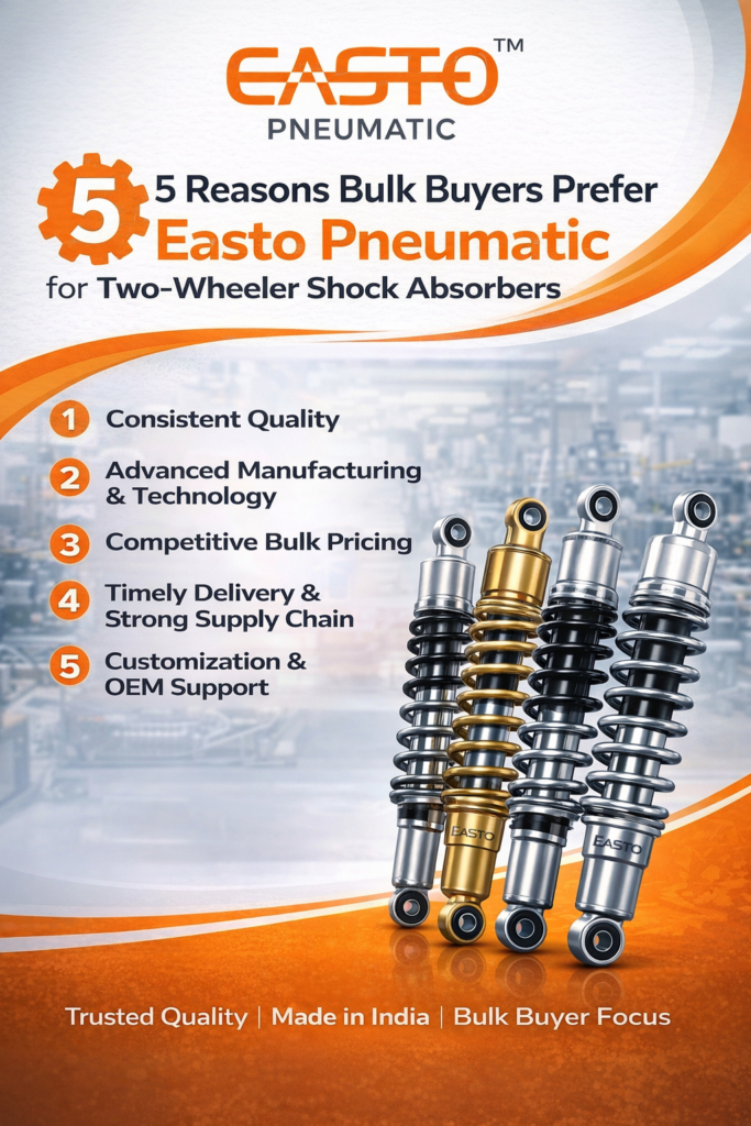 Easto Pneumatic Pvt. Ltd. has emerged as a trusted name in the industry, known for delivering high-quality two-wheeler shock absorbers across India and international markets. Here are five strong reasons why bulk buyers consistently prefer Easto Pneumatic as their manufacturing partner.